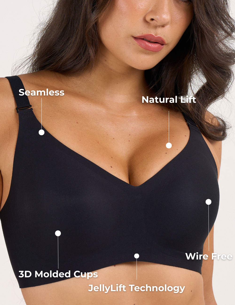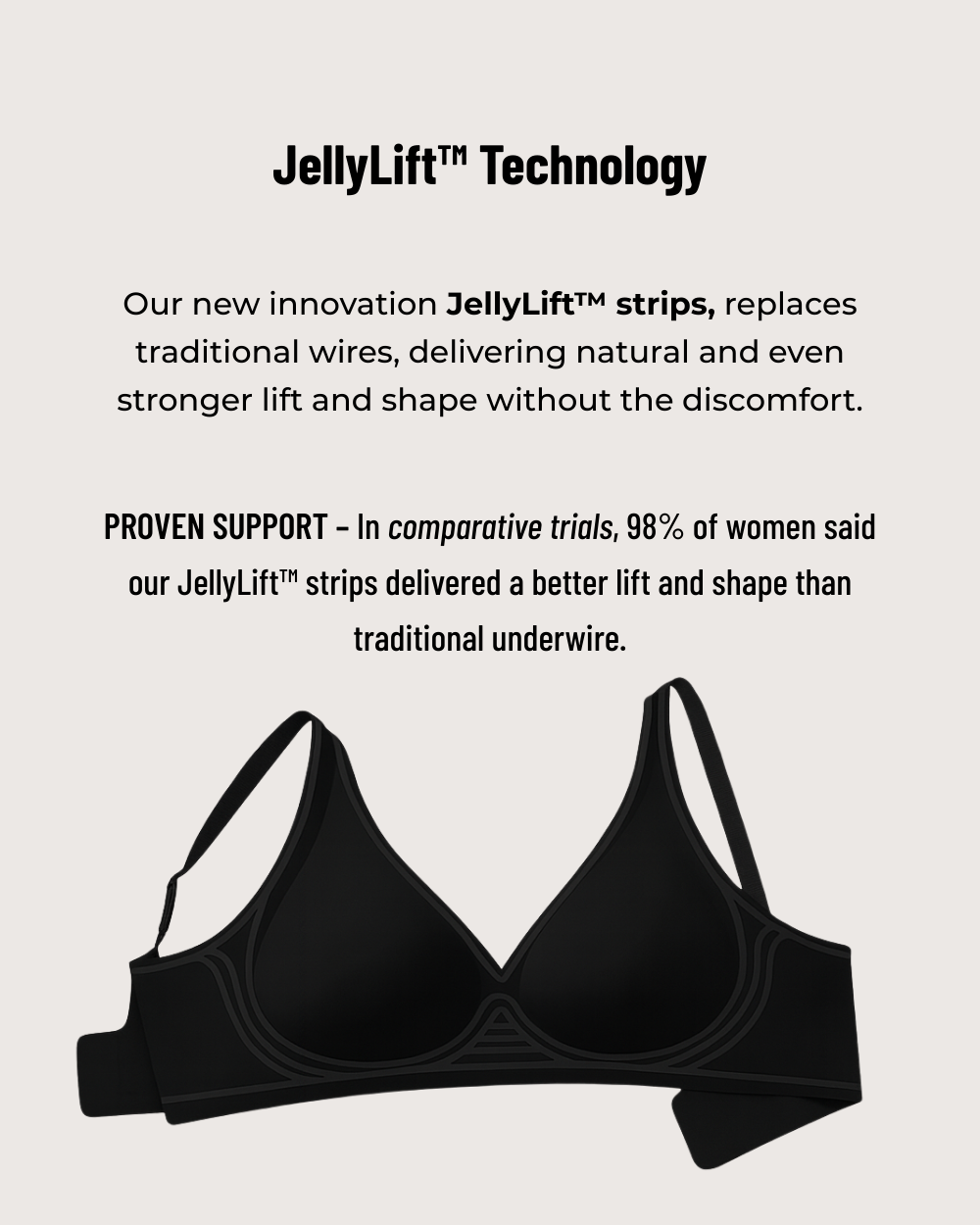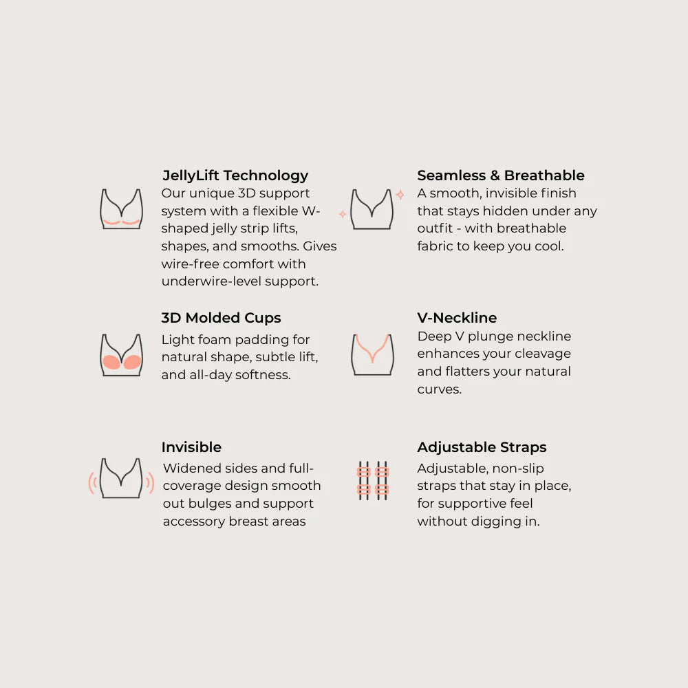 Yes! Our unique W shaped jelly strip is embedded along the cups and side panels, providing natural lift and structure similar to an underwire without any poking or discomfort.