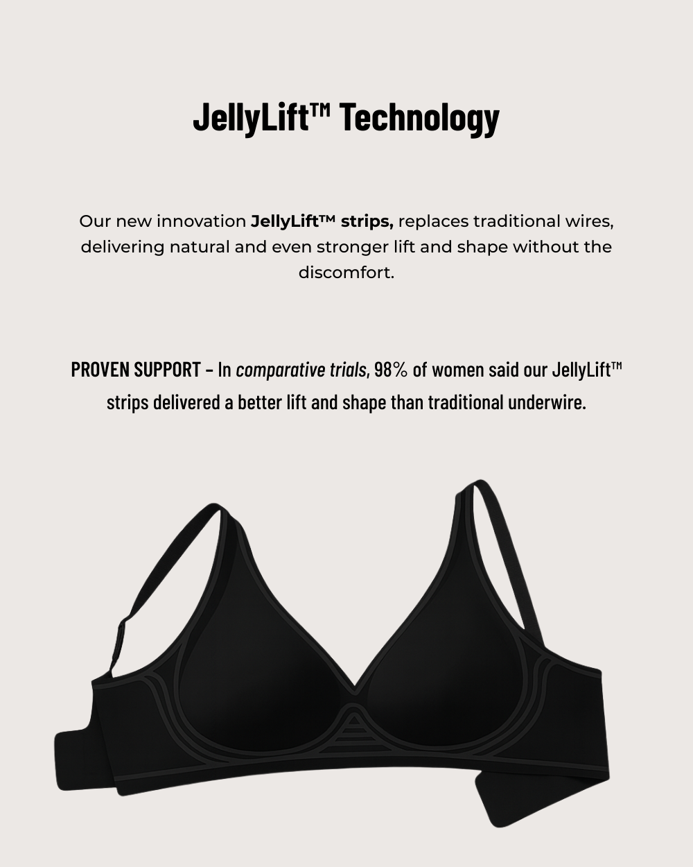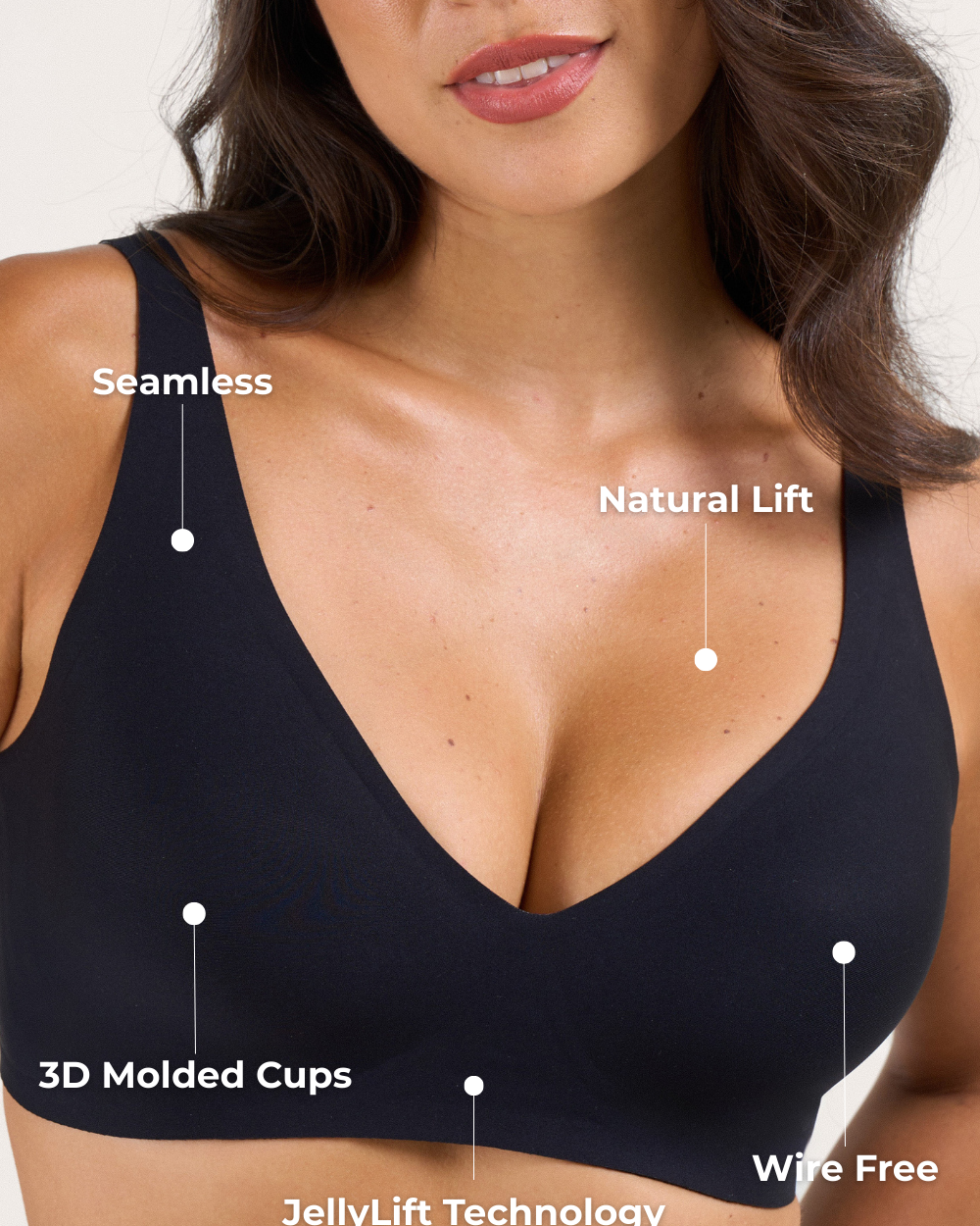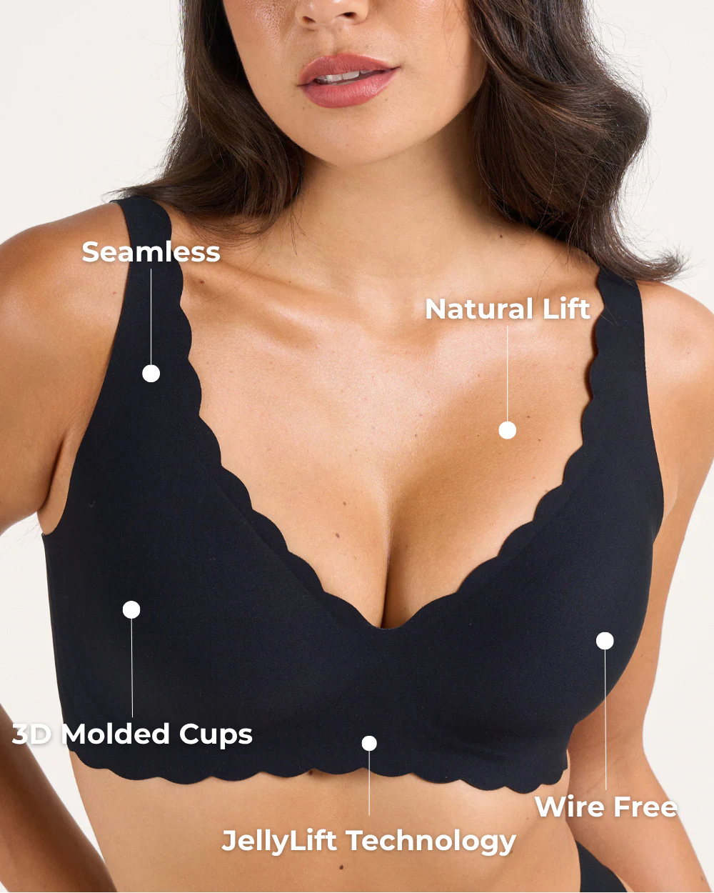 Yes! Our unique W shaped jelly strip is embedded along the cups and side panels, providing natural lift and structure similar to an underwire without any poking or discomfort.
