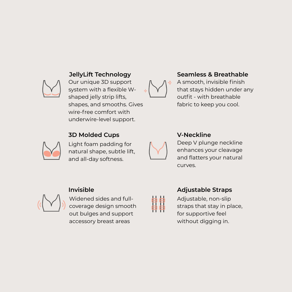 Featuring innovative Jelly Technology for 360° support and natural shaping — without the digging or discomfort of traditional underwires.
