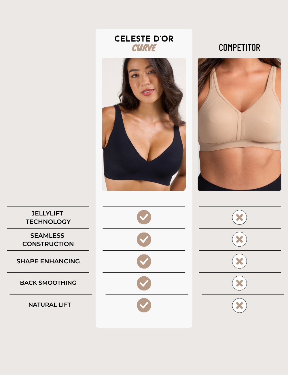 Featuring innovative Jelly Technology for 360° support and natural shaping — without the digging or discomfort of traditional underwires.